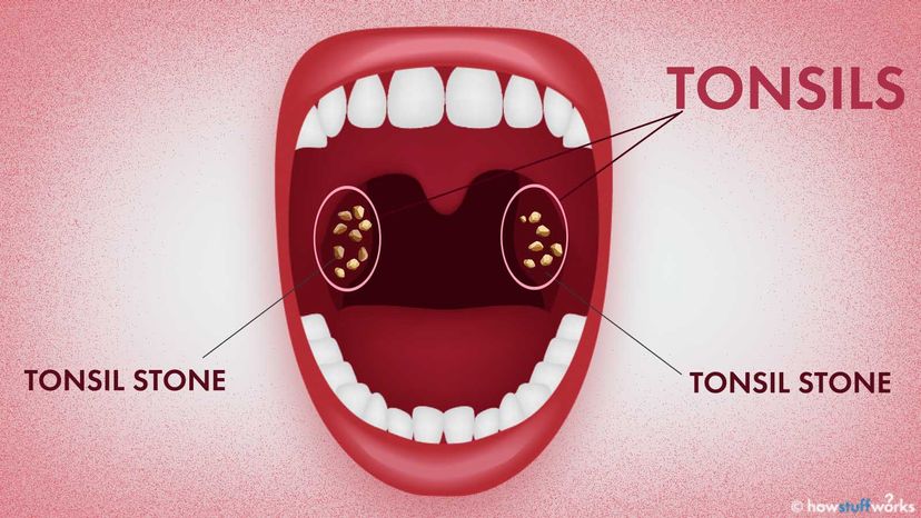 When debris gets caught in the crypts — which sounds way creepier than it is — whitish calcium deposits can form. Et voilà! Tonsil stones.